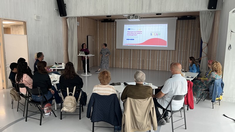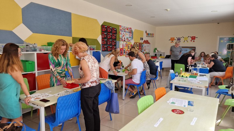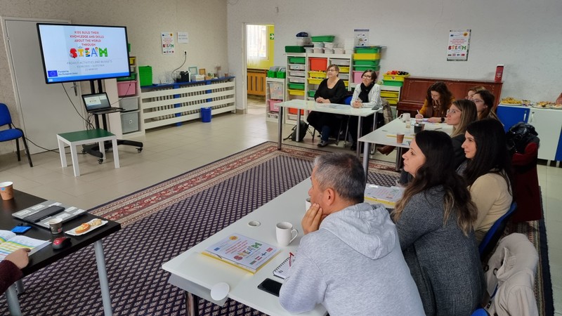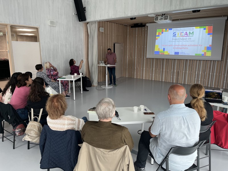 От 19 до 21 октомври 2023 г. в град Манавгат, Турция се състоя обучителен курс за учители на тема "СТЕАМ в детската градина чрез конструктивни дейности" в рамките на проекта. На обучението бе представена новоразработената методология за използване на СТЕАМ подхода в обучението на децата чрез ЛЕГО Дупло конструктивен материал. Обучението се проведе в турската детска градина, а негови лектори бяха представители на обучителните организации по проекта: ДЗЗД "Обучение" (България), T-oppi OY (Финландия) и ERA (Турция). От детска градина 65 "Слънчево детство" се включиха Галина Манолова, Радостина Янева, Иванка Манчева и Ирена Топалова.