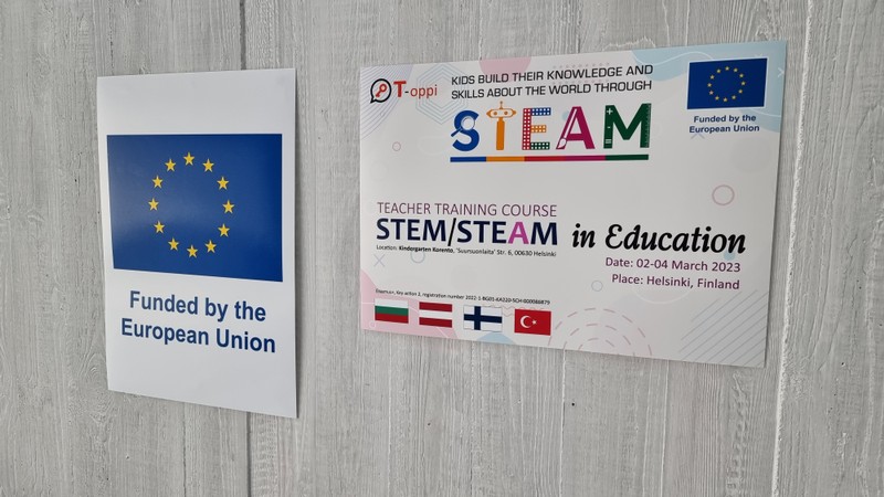 От 2 до 4 март 2023 година в Хелзинки, Финландия се проведе курс за обучение на учители на тема "СТЕМ/СТЕАМ в образованието". Курсът се организира от пратньора T-Oppi OY, а негов домакин бе детската градина Коренто в Хелзинки. В рамките на обучението от ДГ 65 "Слънчево детство" участие взеха Галина Манолова, Ирена Топалова, Иванка Манчева, Радостина Янева. По време на обучението участниците се запознаха със СТЕМ/СТЕАМ подхода и неговите възможности за прилагане в различните степени на образователната система. Специално внимание бе отделено на използването му в детската градина. По време на обучението всички участници посетиха музея за научни експерименти Хеурека, където имаха поставени задачи за идентифициране на опити, свързани с отделните направления в СТЕАМ - наука, технологии, инженерство, изкуство и математика.